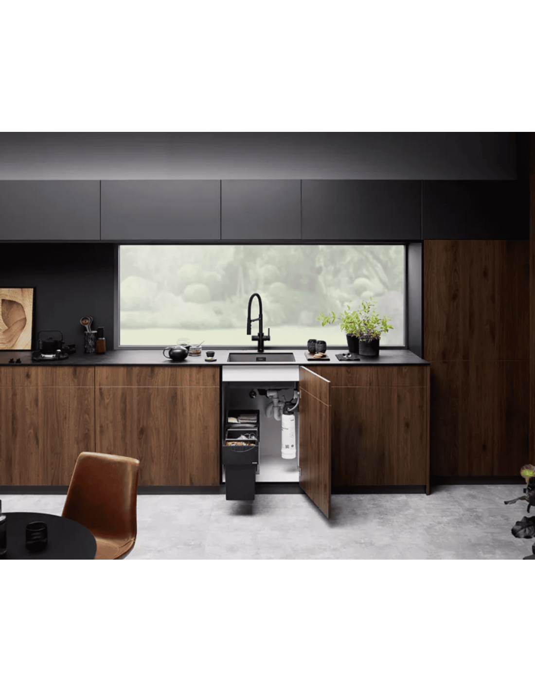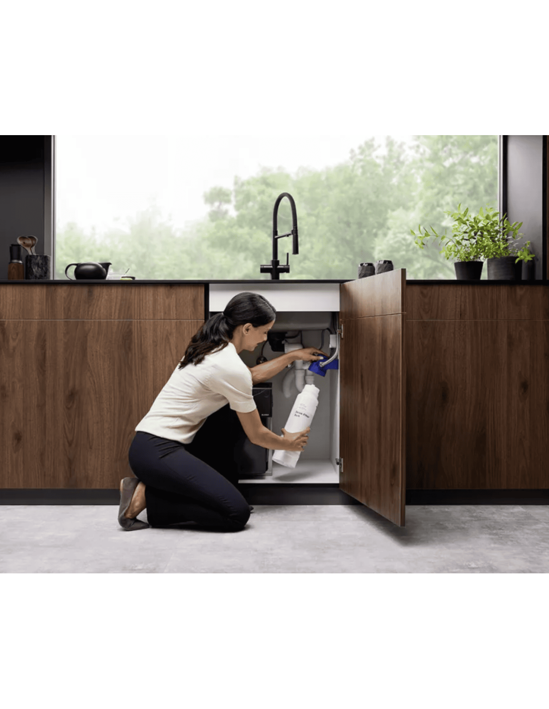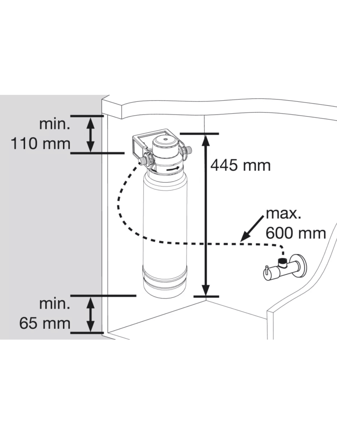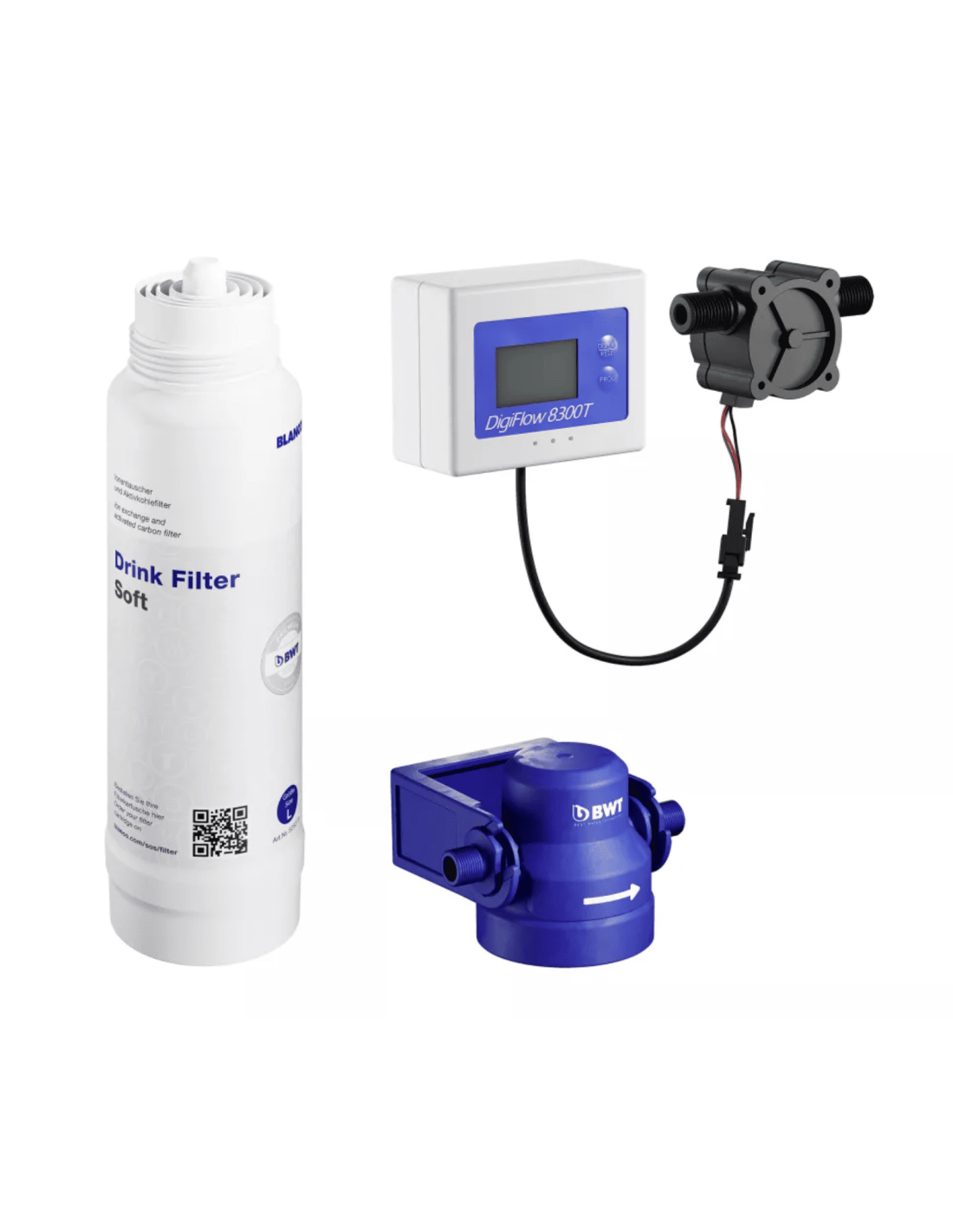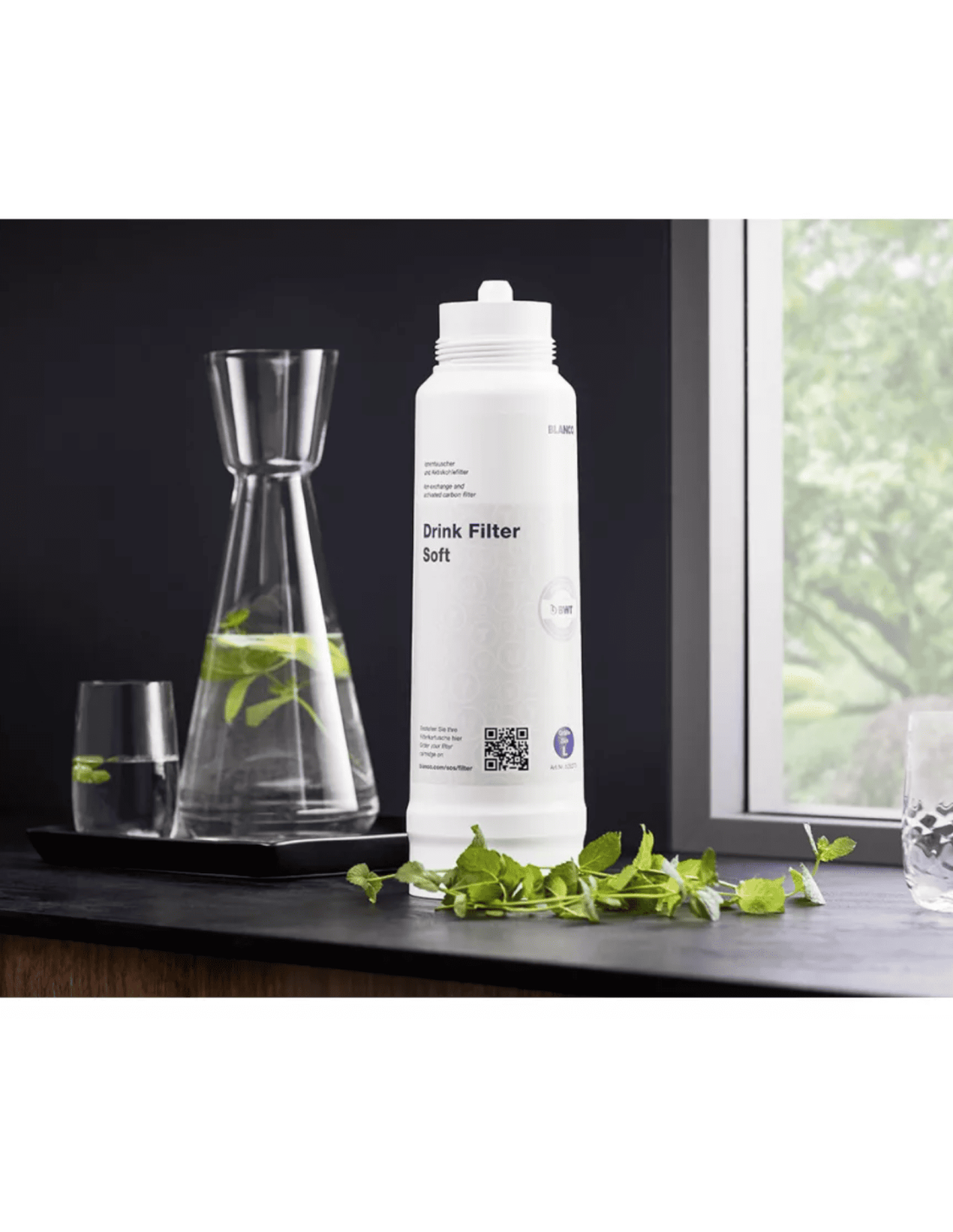 Zestaw do montażu w szafce pod zlewozmywakiem zawiera jeden wielostopniowy wkład filtrujący Drink Filter Soft L o wydajności do 1800 l wody pitnej.