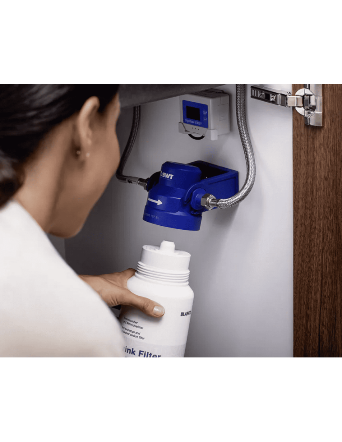Wysokiej jakości system filtrowania wody BWT przeznaczony do baterii kuchennych BLANCO z opcją filtrowania wody.