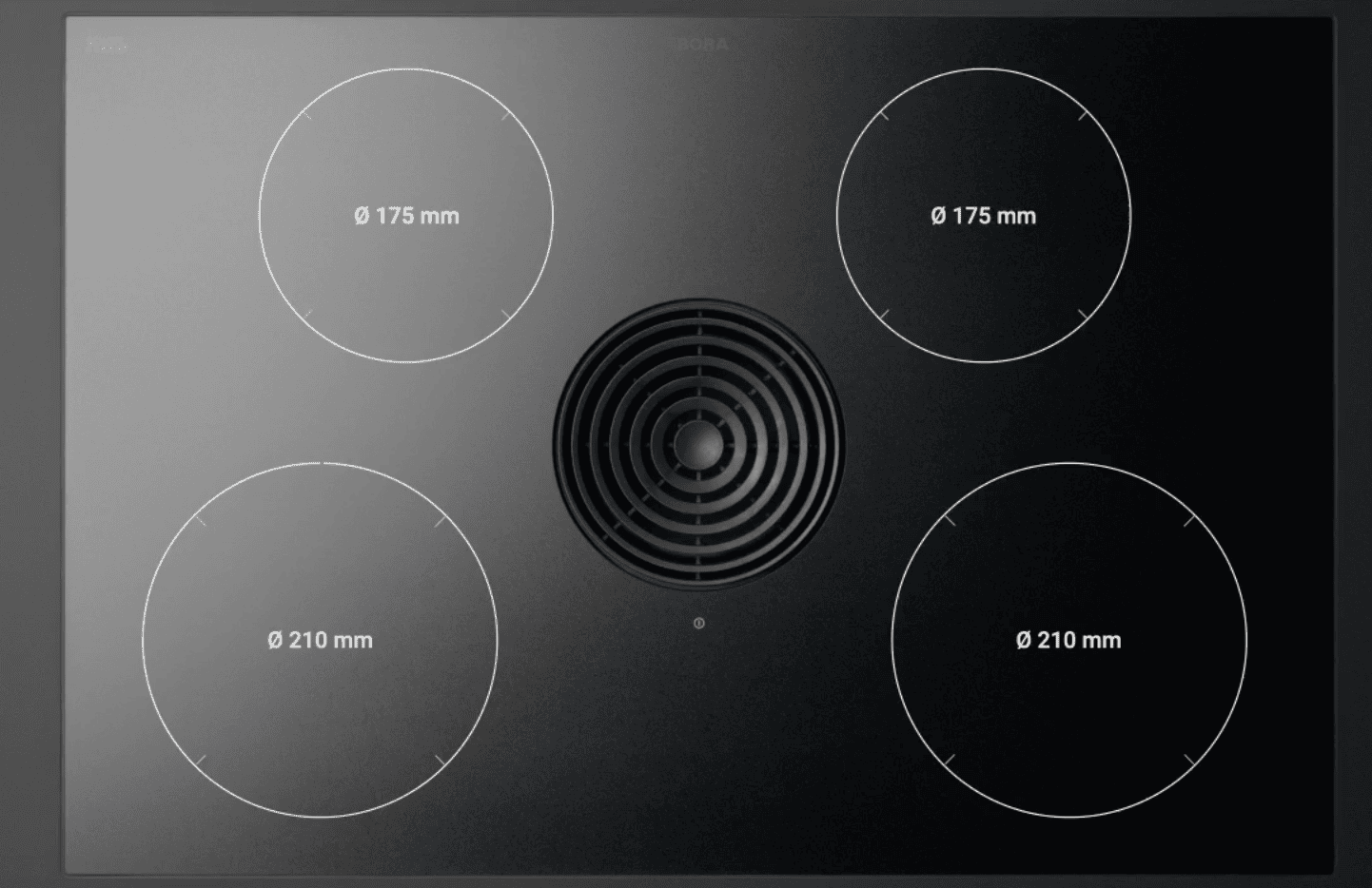 Dzięki centralnemu panelowi i optymalnemu układowi pól, BORA Pure umożliwia jednoczesne gotowanie na 4 garnkach