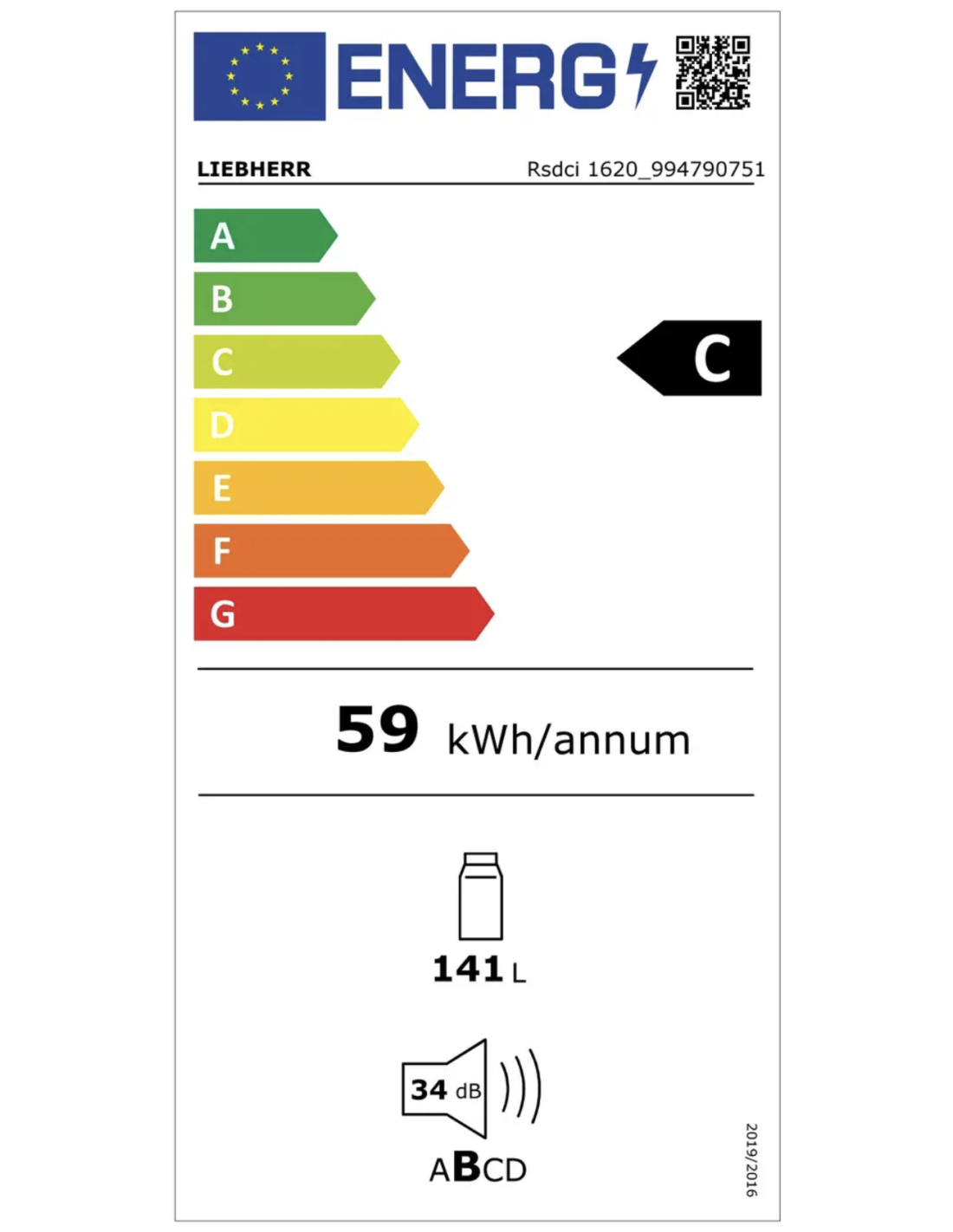 Pojemność całkowita 141 l,Poziom hałasu 34 db