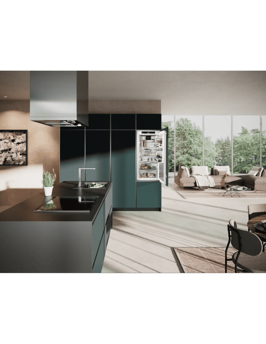 Światło tworzy szczególne akcenty wzornicze – także w lodówce: dzięki naszemu oświetleniu wnętrza. Oświetlenie na obwodzie tworzy wyjątkowe akcenty świetlne we wnętrzu. A razem z tylną ścianką w stylu SmartSteel oraz czarnym wentylatorem o wysokim połysku zapewnia nastrojową atmosferę.